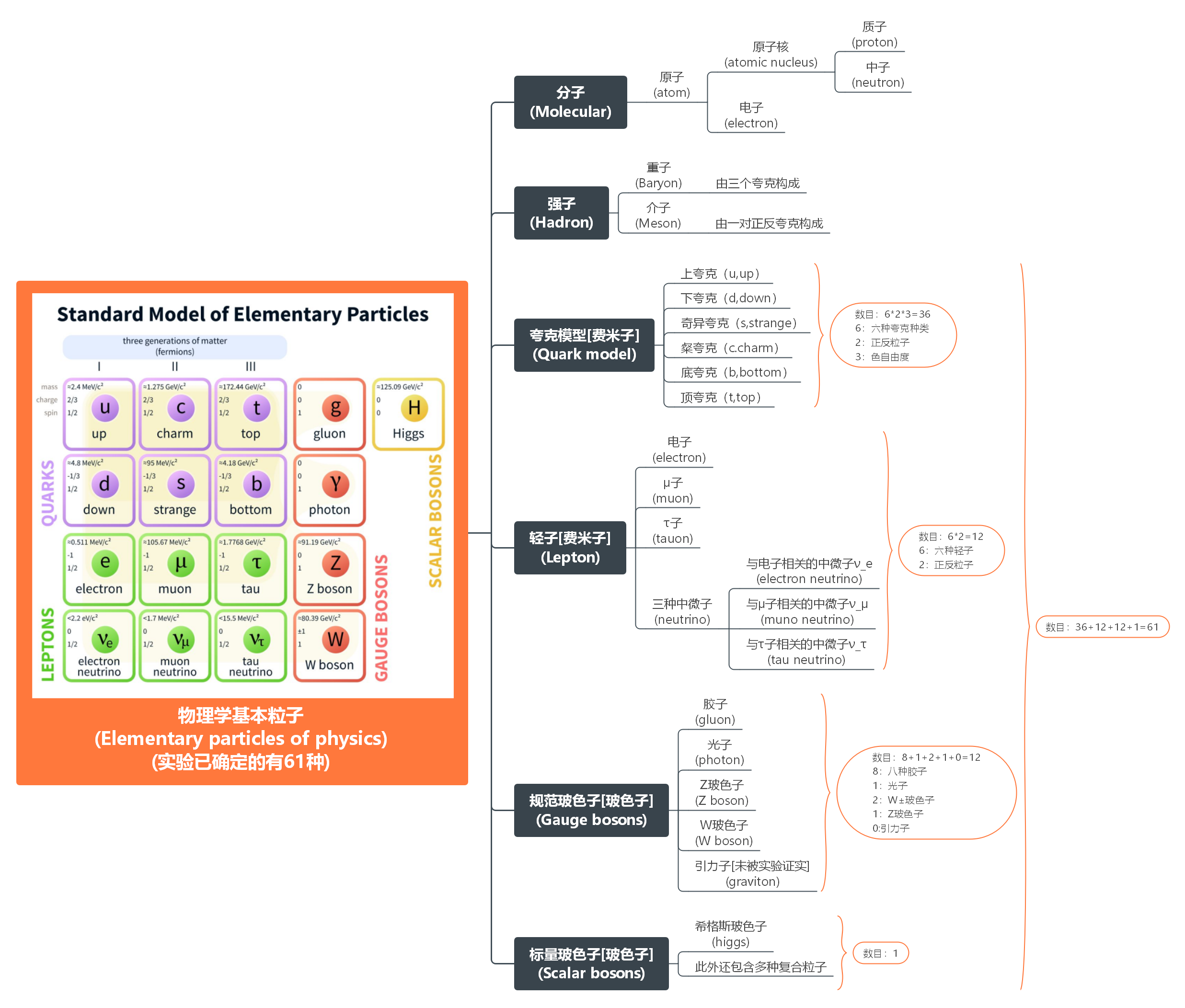 物理学基本粒子(Elementary particles of physics)(实验已确定的有61种)