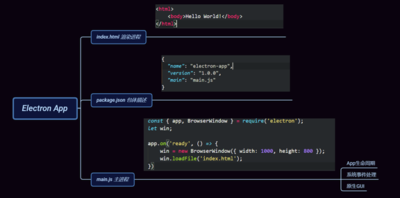 Electron有一个基本的文件结构,类似于我们在创建网页时使用的文件结构[3]: