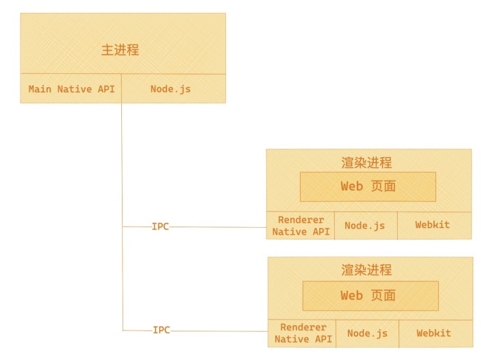 - 主进程管理所有的web页面和它们对应的渲染进程。 每个渲染进程都是独立的,它只关心它所运行的 web页面。