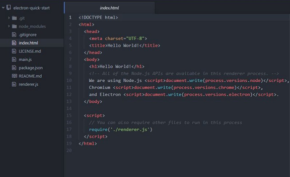 这里我们只简单的介绍下如何使用Electron写一个经典的Hello World。