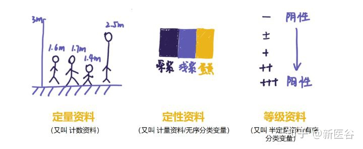 所有的数据分为三种,定量资料、定性资料和等级资料。[9]